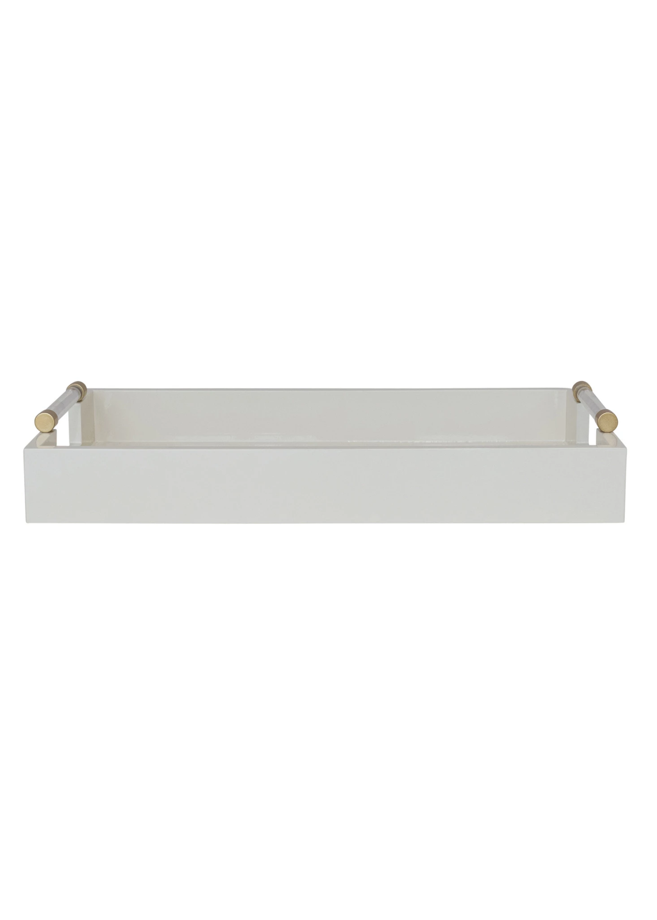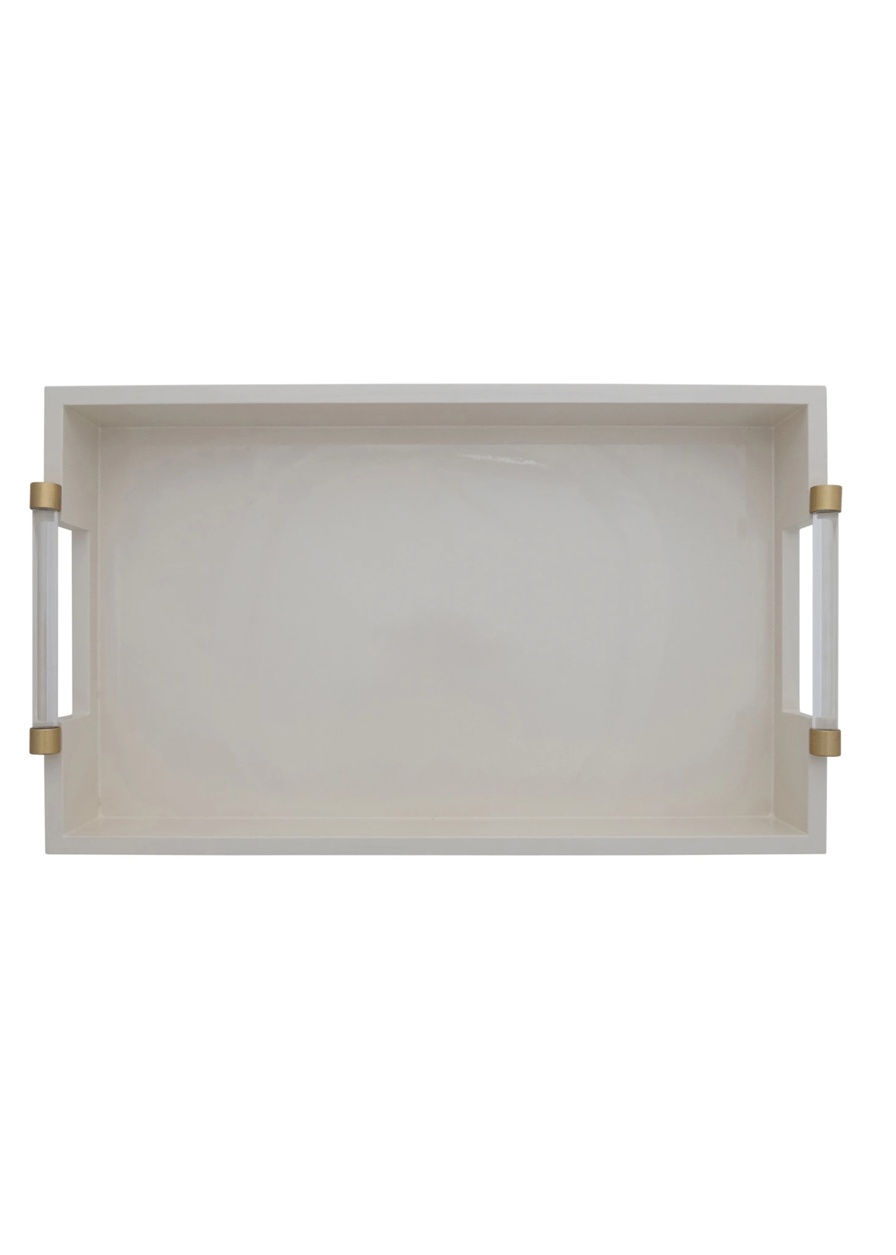 Cream Color Lacquered Tray with Acrylic & Gold Finish Metal Handles.