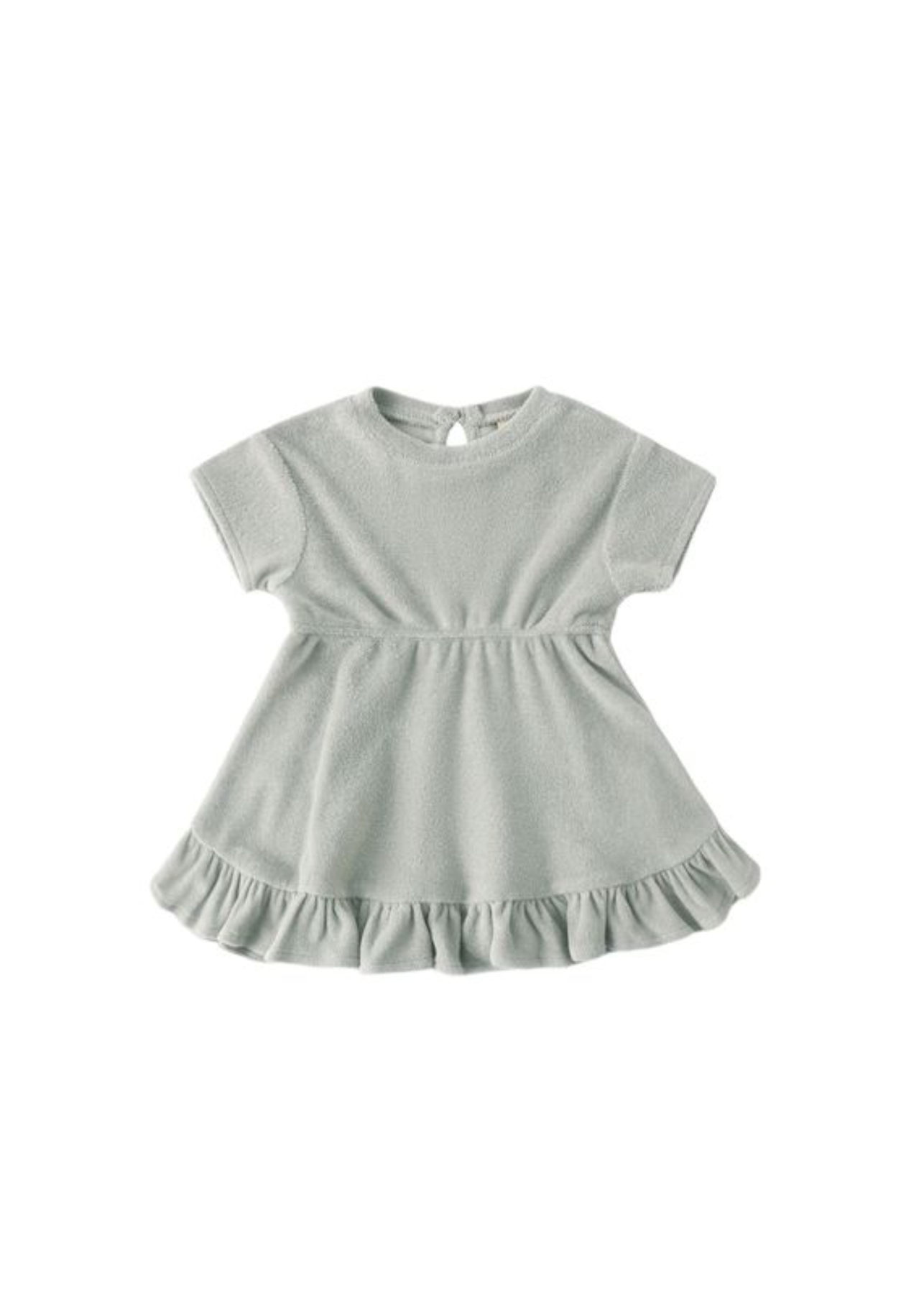 This sweet dress made of our terry cloth fabric features ruffle trim, an elasticized waist, and a button keyhole closure for the perfect fit. Coordinating bloomers included with all sizes.