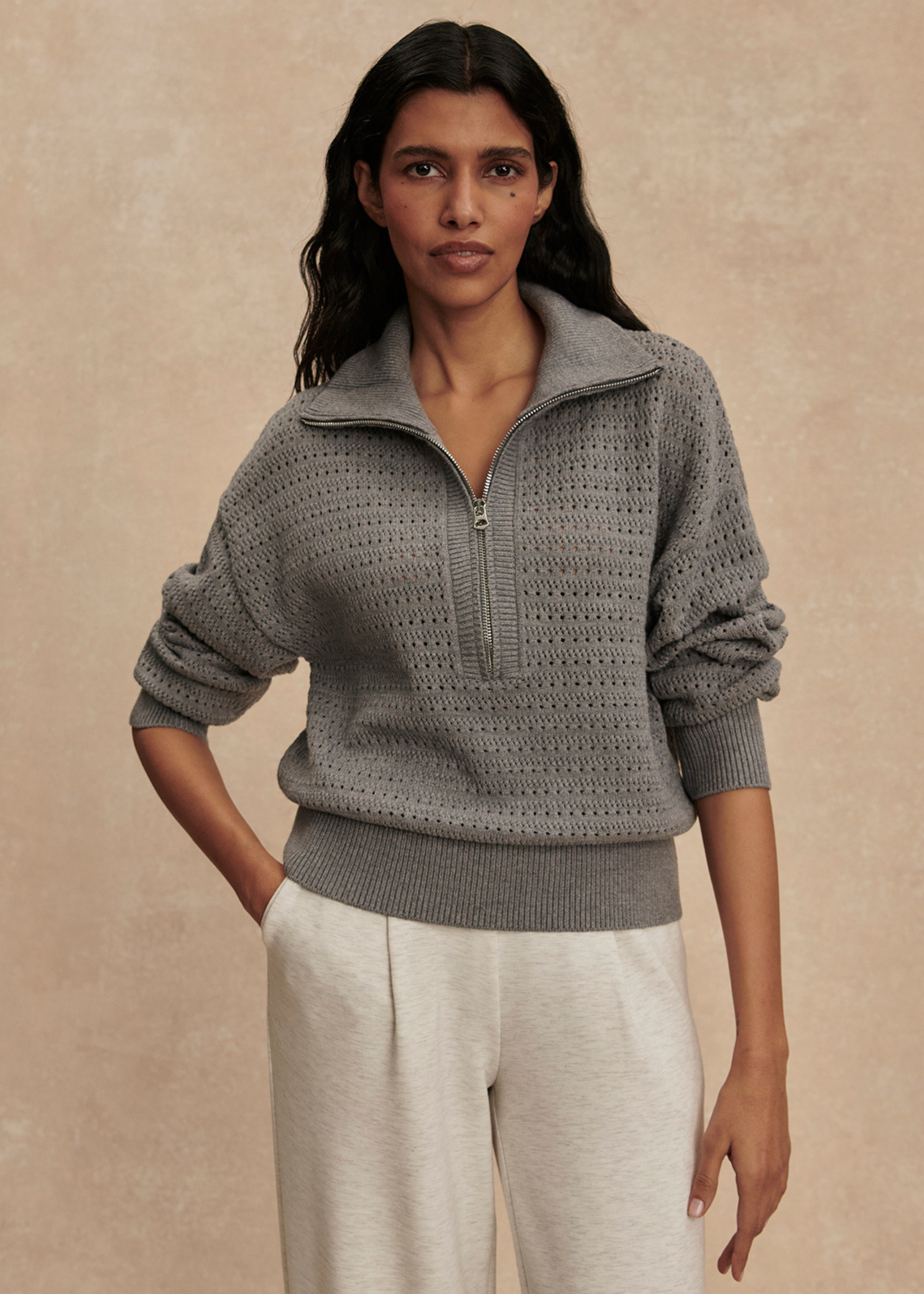 Studio model is 5'9.5", with a 31" bust, 24" waist, 34.5" hips